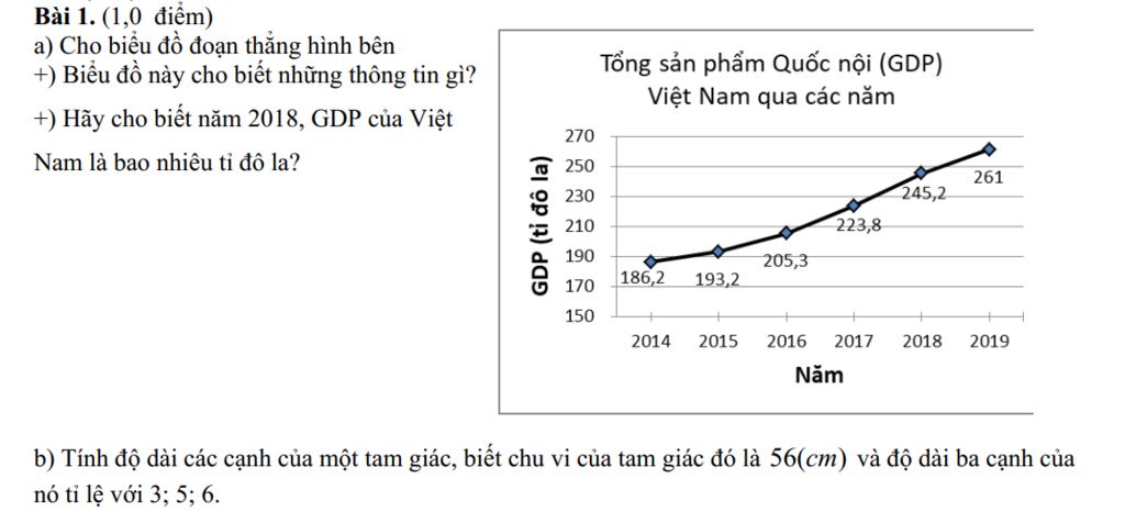 +) Biểu đồ này cho biết GDP của Việt Nam qua các năm từ năm 2014 đến năm 2019