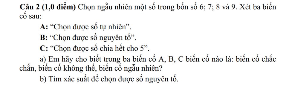a)Biến cố A là biến cố chắc chắn vì 6,7,8,9 đều là stn