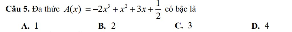 `->` Hạng tử có số mũ cao nhất là `-2x^3`, có số mũ là `3`