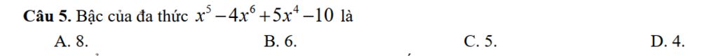 `->` Hạng tử có số mũ cao nhất là `-4x^6`, có số mũ là `6`