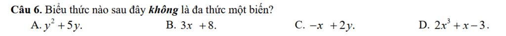 `y^2 + 5y` là đa thức biến `y` nên là đa thức một biến.