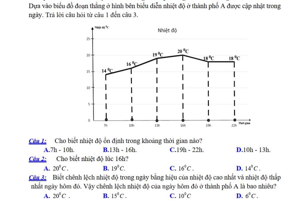 `3.` Chênh lệnh nhiệt độ ngày hôm đó của thành phố `A` là: