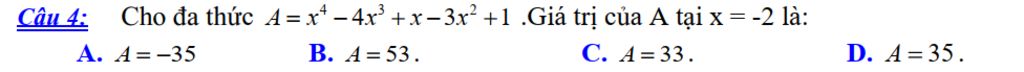 Khi `x=-2` thì `A=x^4 - 4x^3 + x - 3x^2 +1`