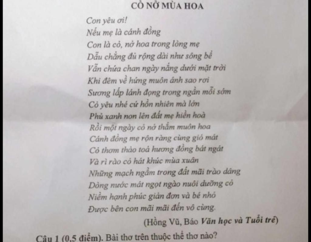 `-` Thể thơ tự do (không quy định số tiếng trong một dòng thơ, không quy định số dòng thơ trong một bài thơ)