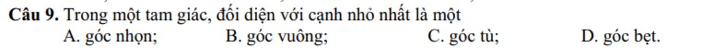 `***` Góc đối diện với cạnh nhỏ nhất là góc nhỏ nhất.