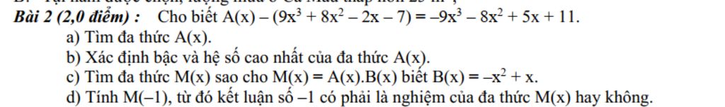 Ta có: `A(x) - (9x^3 + 8x^2 - 2x - 7) = -9x^3 - 8x^2 + 5x + 11`