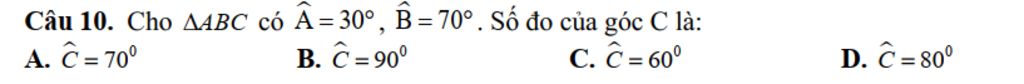 `=>hat{C}=180^o-30^o -70^o=80^o`