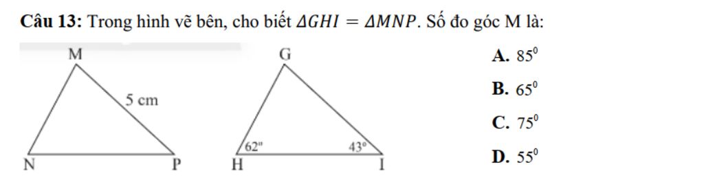 `⇒ hat G = 180^o - 62^o - 43^o = 75^o`