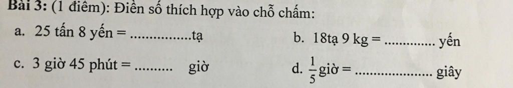 c, 3 giờ 45 phút = 3,75 giờ