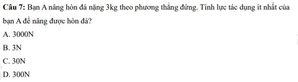 `P = 10m = 10 . 3 = 30` (N)