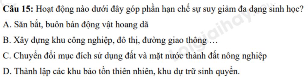`-` Hoạt động thành lập các khu bảo tồn thiên nhiên, khu dự trữ sinh quyển góp phần hạn chế sự suy giảm đa dạng sinh học