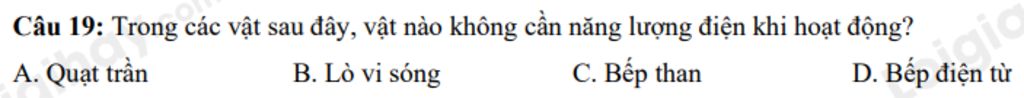 `@` Bếp than không cần năng lượng điện khi hoạt động mà cần nhiên liệu than để hoạt động.