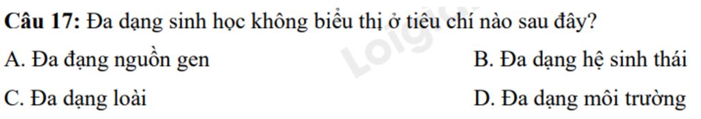`-` Vì đa dạng sinh học không biểu thị ở tiêu chí đa dạng môi trường.