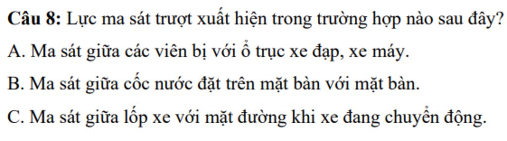 avatar nekomaki đã trả lời câu hỏi "Câu 8: Lực ma sát trượt xuất hiện trong "... mà bạn đang theo dõi một phút trước