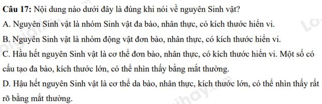 `@` Khái niệm: Nguyên Sinh vật là nhóm động vật đơn bào, tế bào nhân thực, có kích thước hiển vi, mắt thường không quan sát được.