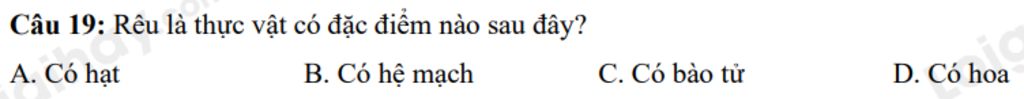 Rêu thường mọc thành từng thảm trên chân tường,nơi âm ướt,trên thân cây to,…Cây không có hệ mạch dẫn cũng như chưa có rễ chính thức;có cơ quan sinh sản là bào tử