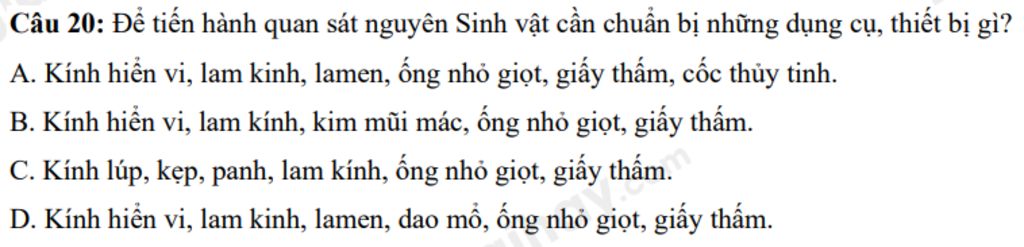 `@`Để tiến hành quan sát nguyên Sinh vật cần chuẩn bị những dụng cụ, thiết bị: