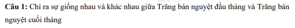 `*` Sự giống nhau giữa trăng bán nguyệt đầu tháng và trăng bán nguyệt cuối tháng là: