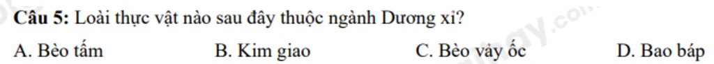 + A;D Bèo tấm thuộc ngành Hạt kín