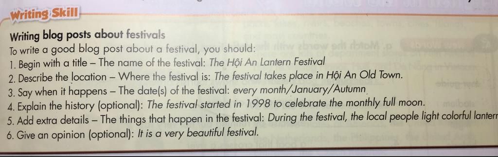 Now, write a blog post about your favorite festival. Use the Feedback form to help you. Write 60 to 80 words