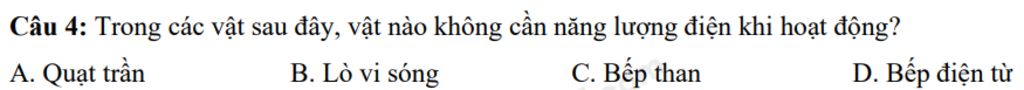 `-` Quạt trần `,` lò vì sóng `,` bếp điện từ là đồ vật sử dụng bằng điện