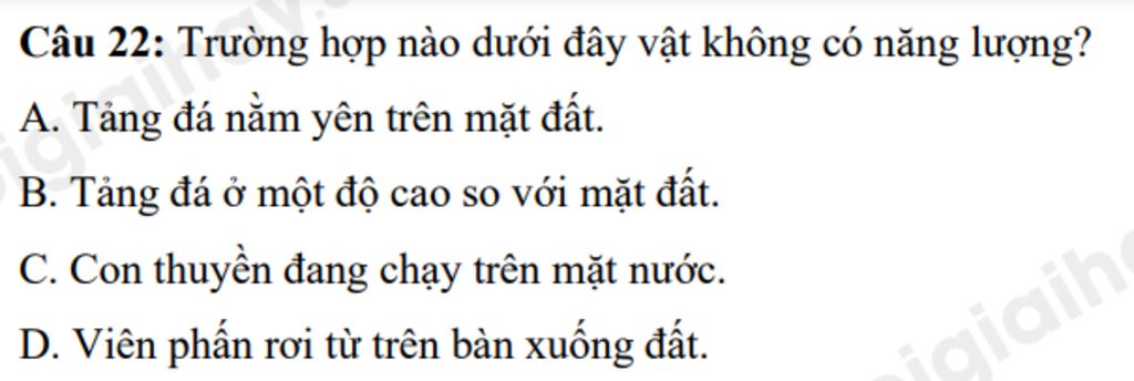 `+A` Tảng đá nằm yên trên mặt đất, tảng đá không có chuyển động nên không có năng lượng