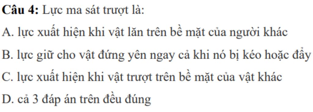 A. lực xuất hiện khi vật lăn trên bề mặt của người khác