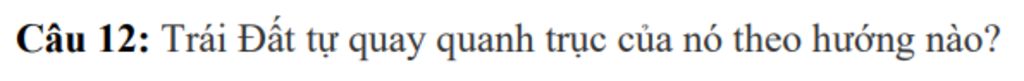 Trái Đất tự quay quanh trục của nó theo hướng nào?