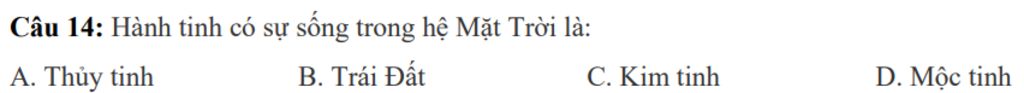 `@`Trái Đất là hành tinh có sự sống trong hệ Mặt Trời vì nó có khoảng cách, khí quyển, nước và bề mặt đa dạng tạo nên điều kiện thuận lợi cho sự sống trên Trái Đất