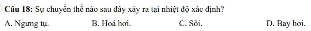 Sự chuyển thể nào sau đây xảy ra tại nhiệt độ xác định?