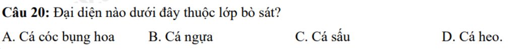 `D.` Cá heo (Lớp động vật có vú/Thú)