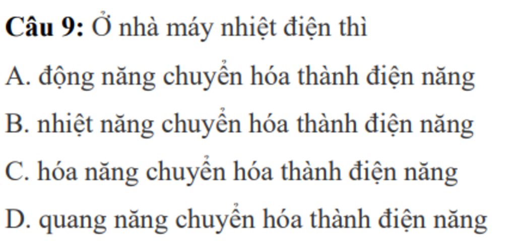 Câu `9`: Ở nhà máy nhiệt điện thì