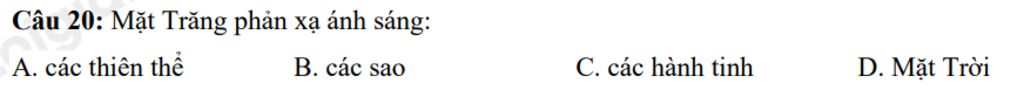 Theo lý thuyết phần Lý KHTN6, Mặt Trăng phản xạ ánh sáng Mặt Trời.