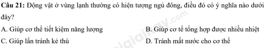 Động vật ở vùng lạnh thường có hiện tượng ngủ đông, điều đó có ý nghĩa nào dưới đây?