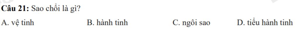 `@` Sao chổi là tiểu hành tinh. Nó được cấu tạo chủ yếu từ băng và một số bụi bẩn, tạp chất...