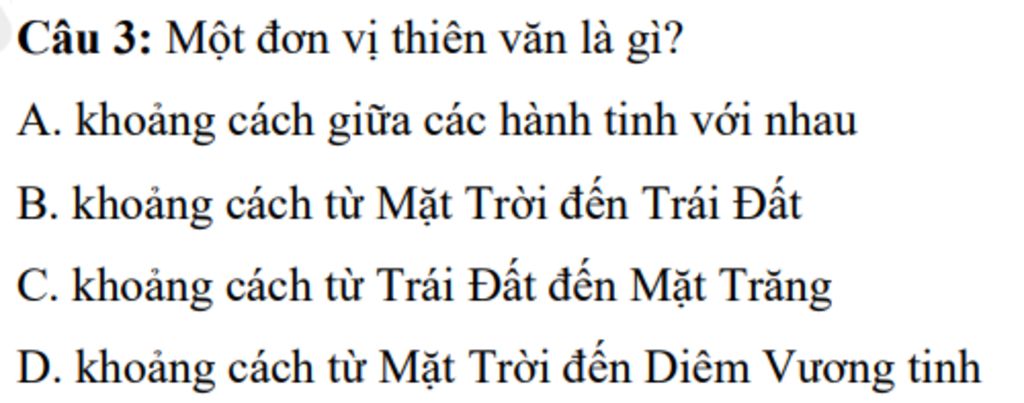 Câu `3:` Một đơn vị thiên văn là gì?