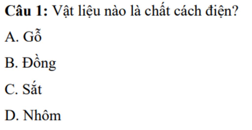 `@`Gỗ là chất cách điện vì nó có khả năng cản trở dòng điện chạy qua