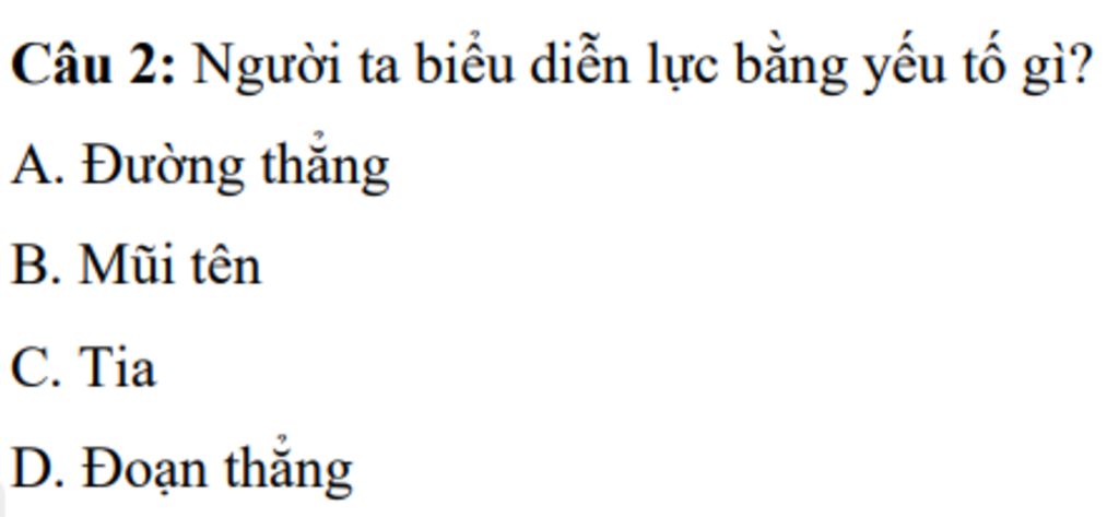 `@`Người ta thường biểu diễn lực bằng mũi tên, với hướng và độ lớn của mũi tên đại diện cho hướng và độ lớn của lực