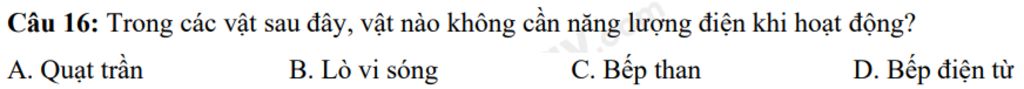 `@`Bếp than không cần năng lượng điện khi hoạt động vì bếp than hoạt động nhiệt từ sự đốt cháy than, không cần năng lượng điện để hoạt động