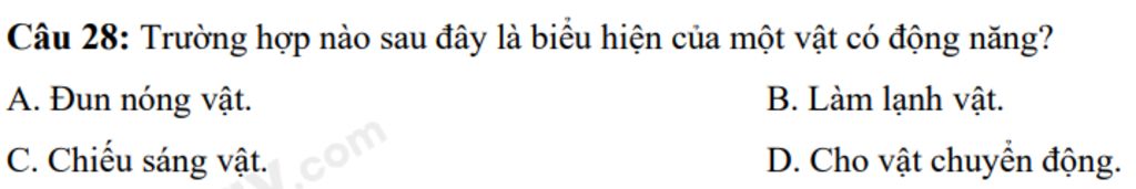 `+A` Đun nóng vật là một vật có nhiệt năng