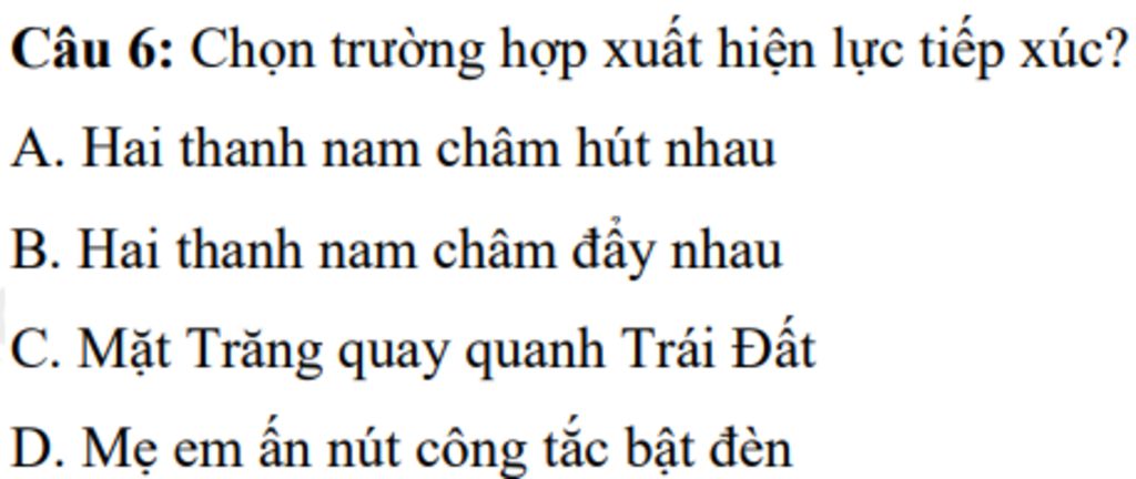 Câu 6: Chọn trường hợp xuất hiện lực tiếp xúc?