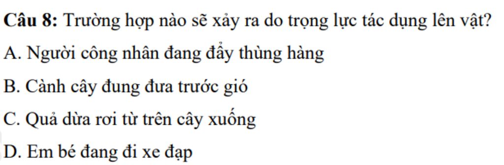 Trường hợp nào sẽ xảy ra do trọng lực tác dụng lên vật?
