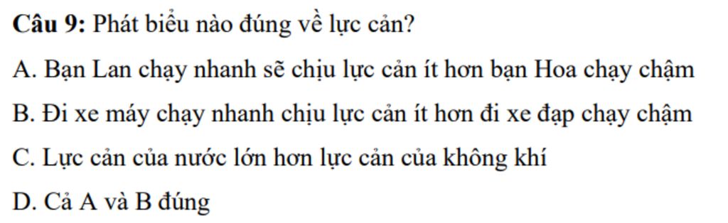 C. Lực cản của nước lớn hơn lực cản của không khí