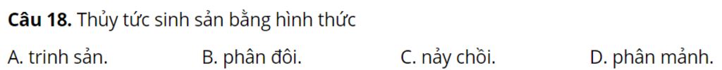 `@`Một phần của cơ thể của thủy tức phát triển , tạo thành `1` cơ thể mới gọi là nảy chồi