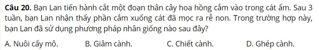 ( Lí do : bạn Lan đã cắt thân cây hoa hồng cắm xuống đất mọc ra rễ non ( cây hoa hồng con )
