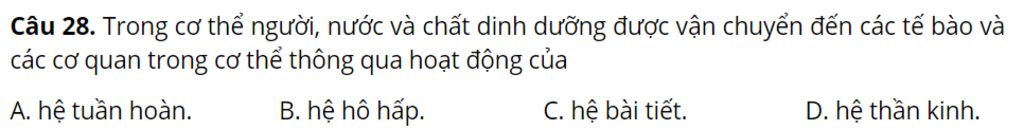 `@`Hệ tuần hoàn có vai trò vận chuyển máu, chất dinh dưỡng và oxy đến các tế bào và cơ quan trong cơ thể, cũng như loại bỏ các sản phẩm phụ của sự trao đổi chất