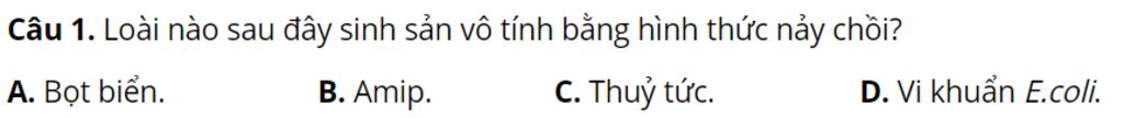 Câu `1.` Loài nào sau đây sinh sản vô tính bằng hình thức nảy chồi`?`