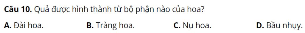 `@`Quả được hình thành từ bầu nhụy vì đó là nơi chứa các tế bào phôi và nơi mà hạt phấn thụ phấn