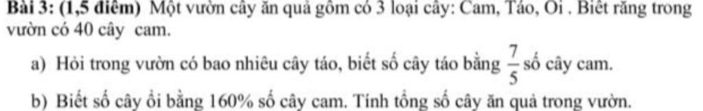 40 x 160 % = 40 x $\frac{160}{100}$ = 64 ( cây)