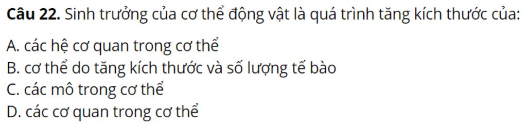 `-` Sinh trưởng của cơ thể động vật liên quan đến sự gia tăng về kích thước và số lượng tế bào.